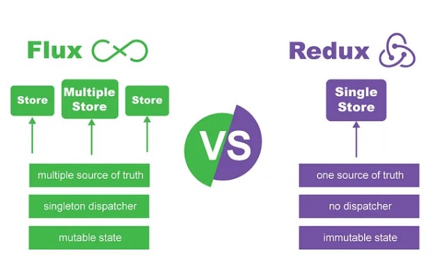 Flux 패턴에서는 여러 개의 스토어(Store)가 존재할 수 있으며, 각 스토어는 애플리케이션의 특정 부분에 대한 상태를 관리합니다. 이 구조는 애플리케이션이 복잡해질수록 각기 다른 기능에 대해 별도의 스토어를 필요로 할 수 있습니다. 반면, Redux는 단 하나의 전역 스토어만 사용합니다. Redux의 모든 애플리케이션 상태는 이 단일 스토어에 저장되고, 상태는 항상 불변성을 유지하도록 설계됩니다. 이러한 단일 스토어 구조는 상태를 예측 가능하게 하고, 애플리케이션의 상태 관리가 단순하고 투명하게 이루어질 수 있도록 돕습니다.